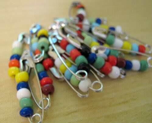 Купили все необходимое? Далее берем булавки и нанизываем на них бусины.